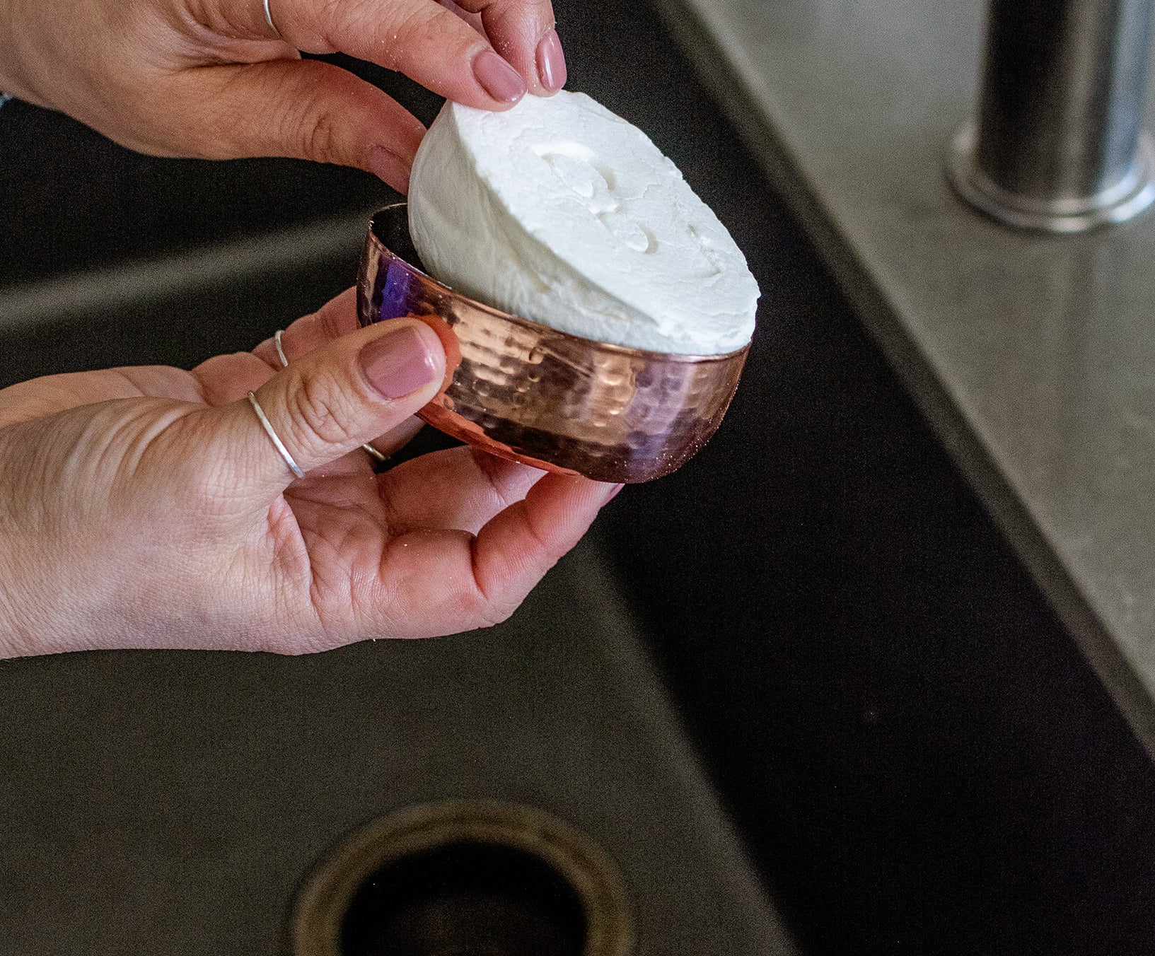 This refill bar is hand poured and scraped to fit the copper colored oval bowl. The bar can also be used on its own by simply placing it on a soap dish or tray.