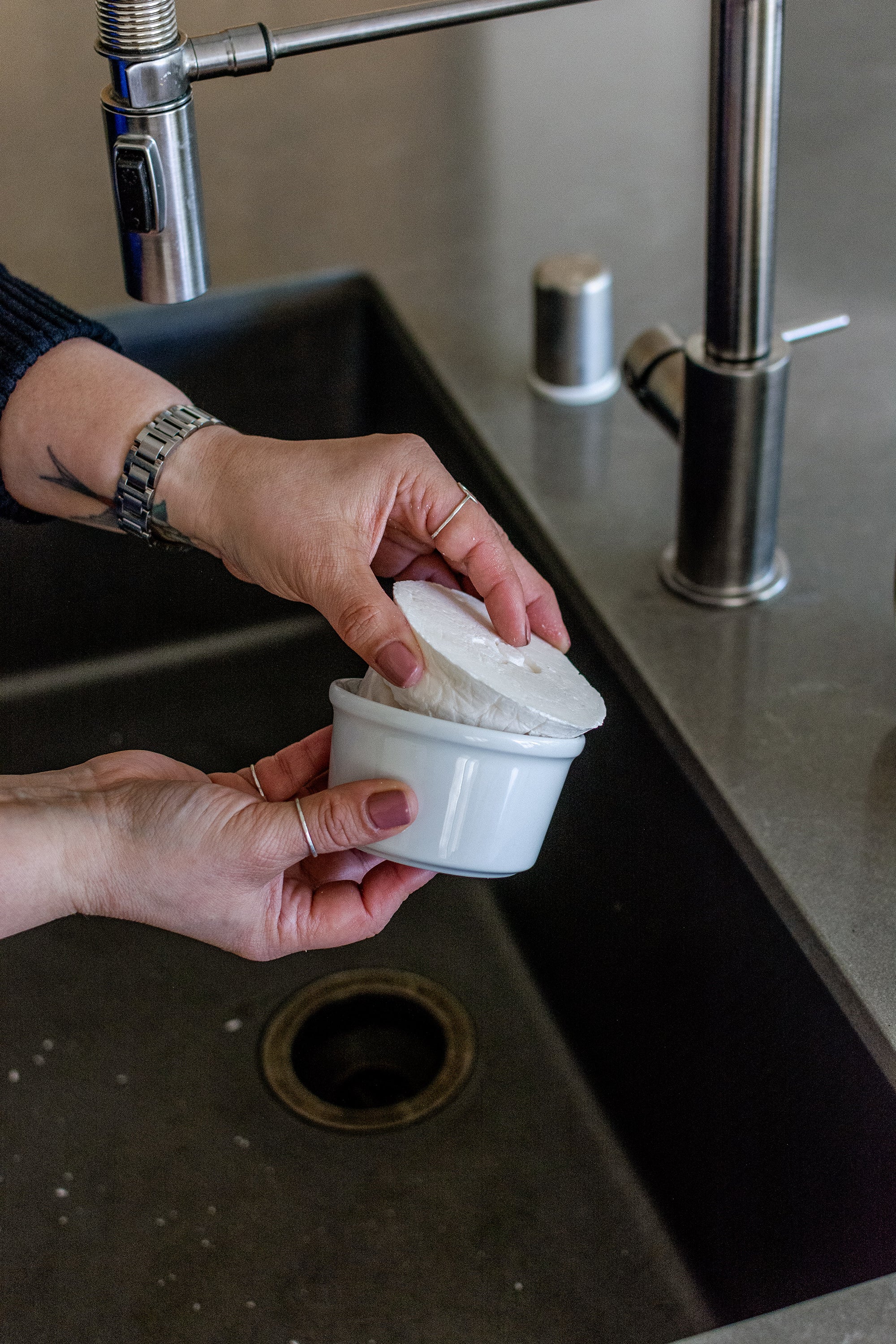 This refill bar is hand poured and scraped to fit inside of the White Porcelain Bowl product, but can also be used on it's own by simply placing it on a soap dish