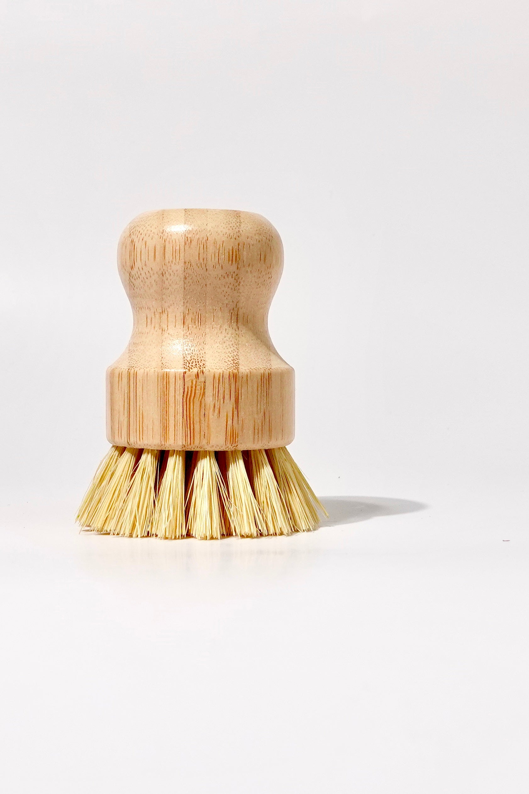 These soft plant fiber and bamboo brushes enable you to clean plates and cups thoroughly. Pair with our solid dish soap. This brush is best used for light scrubbing of dishes and light scrubbing on minimal debris for pots.