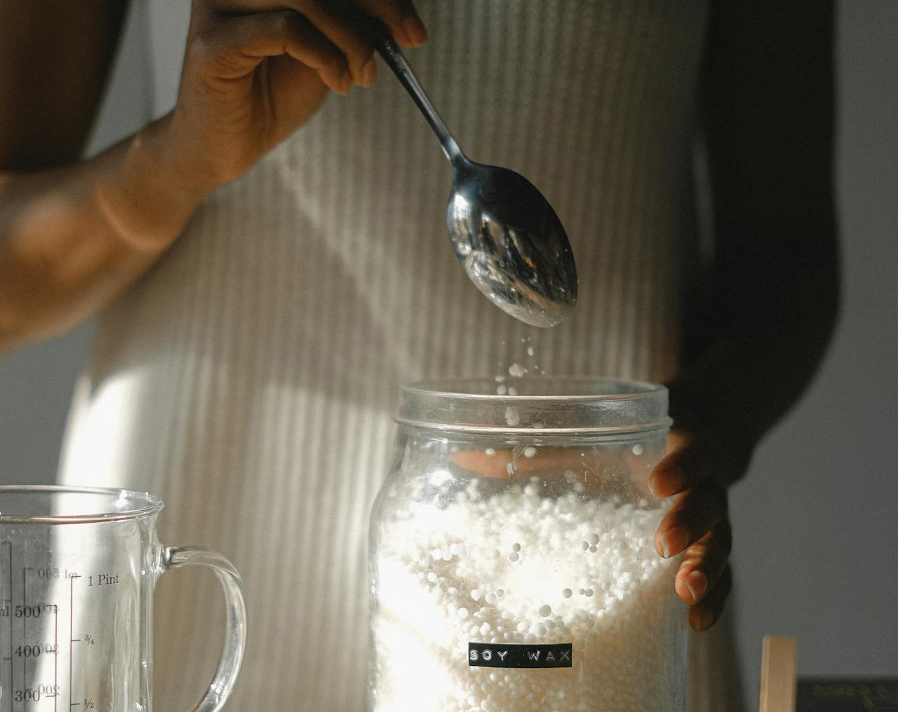 Soy wax: Eco-friendly, renewable, and biodegradable, offering a cleaner burn with less soot and toxins compared to paraffin. It also has a longer burn time, holds fragrance well.