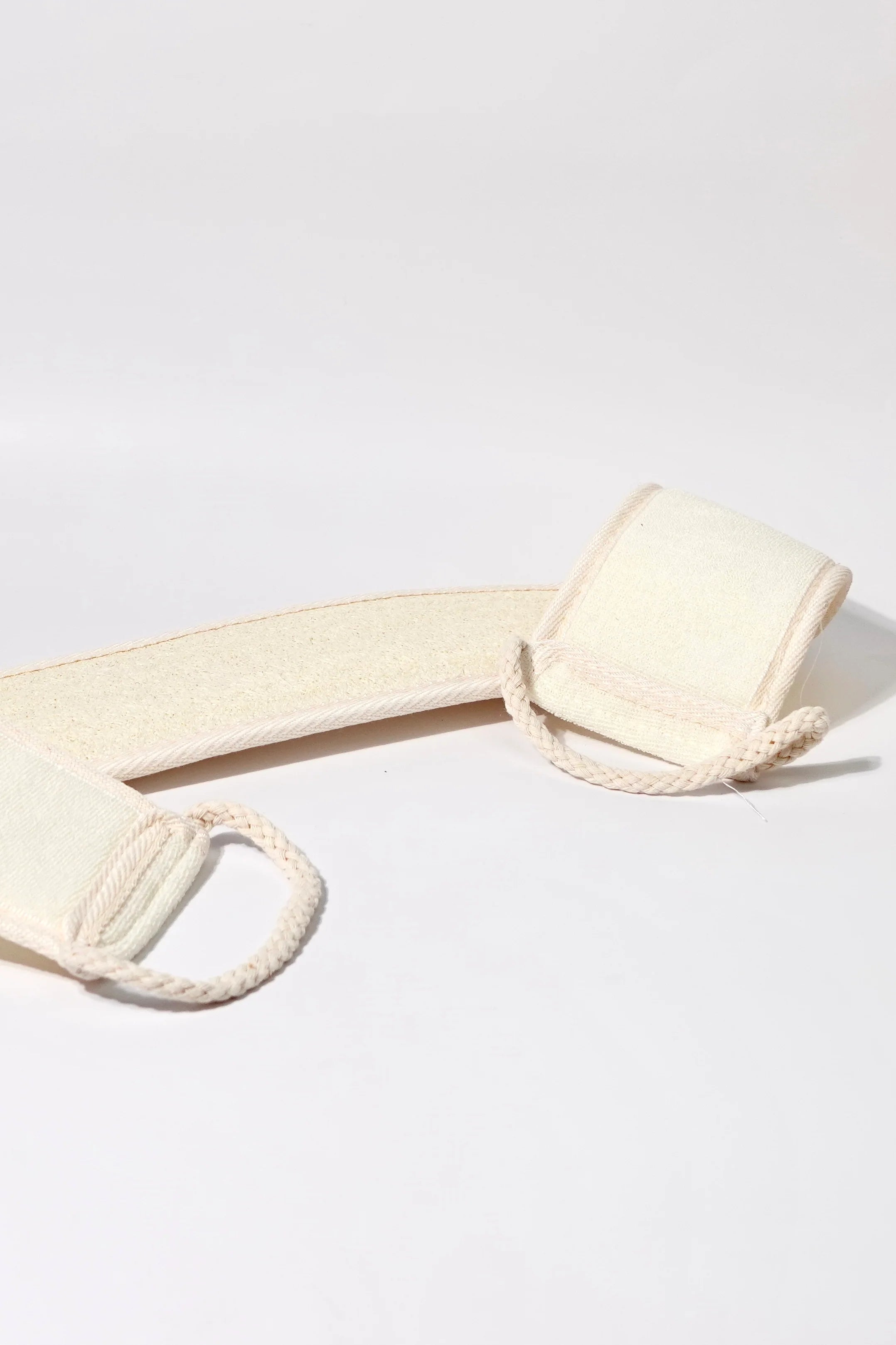 A natural terry cloth and loofah back scrubber exfoliates the skin, stimulates circulation, removes dead skin cells, prevents ingrown hairs, and enhances moisture absorption for smoother, healthier skin.