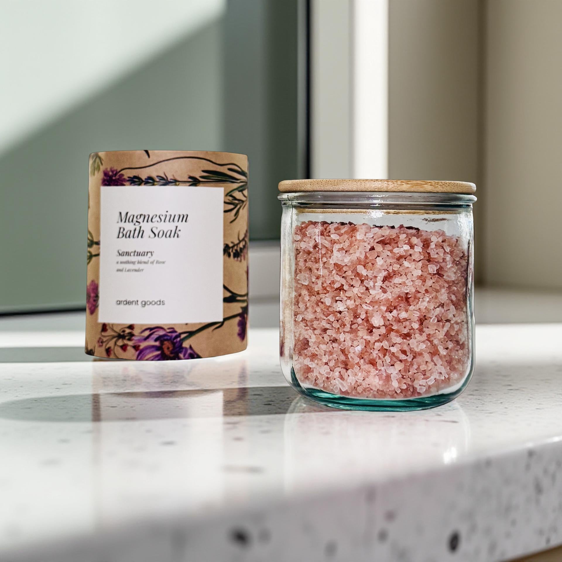 Magnesium Bath Salt Soak in refillable Glass Jar